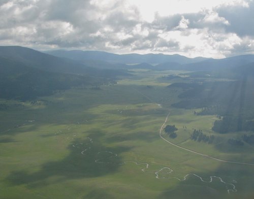 A total surprise, and a major treat. Our 90 minutes aloft took us around the Jemez, our local supervolcano remnant, over Abiquiu, down the Rios Chama and Grande, and across the mountains above Santa Fe to check out this summer’s “smaller” local conflagration, dubbed the Pacheco Fire. Here’s a few of the many shots Barb took while we were being continually bedazzled: