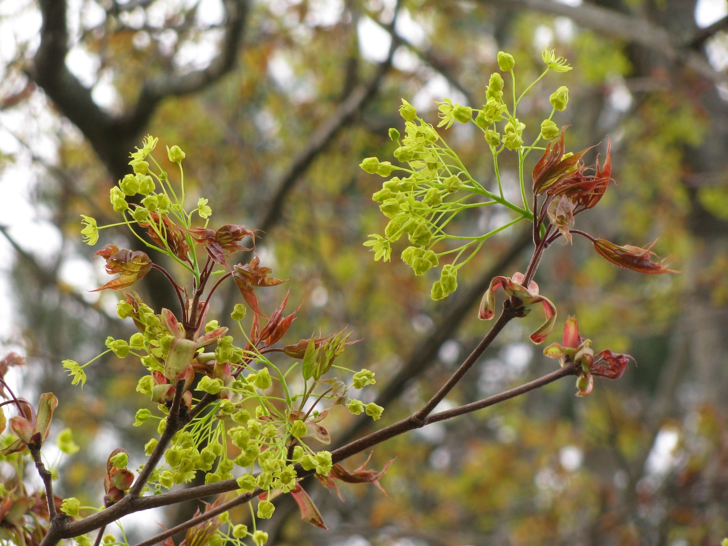 Look at bit closer, though, and the prelude becomes a delight-filled symphony in its own right. It is—by far!—the time of the most varied visual delights: brilliant two- and three-toned buds bursting forth; tumbling crimson maple-flowers; feathery beech leaves cracking open their long, arcing sheaths; fiddleheads unfurling atop thin stalks. And as a backdrop to all this, an impressionistic splattering of new leaves in a diverse palette of color tones is gradually filling the fractal lacework of the forest canopy. Many leaves begin as rusty-browns and dirty-greens, a few shine in deep reds, and of course there’s every shade of green known to god and man (sage to spring to yellow to olive), while just for good measure, a few trees leaf out in pale off-white, tinged with a dusty yellowish cast or the merest hint of green.
